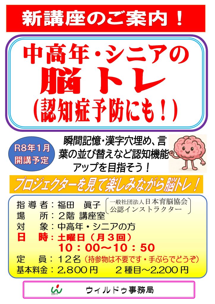 新講座のご案内 中高年・シニア向け「脳トレ」
